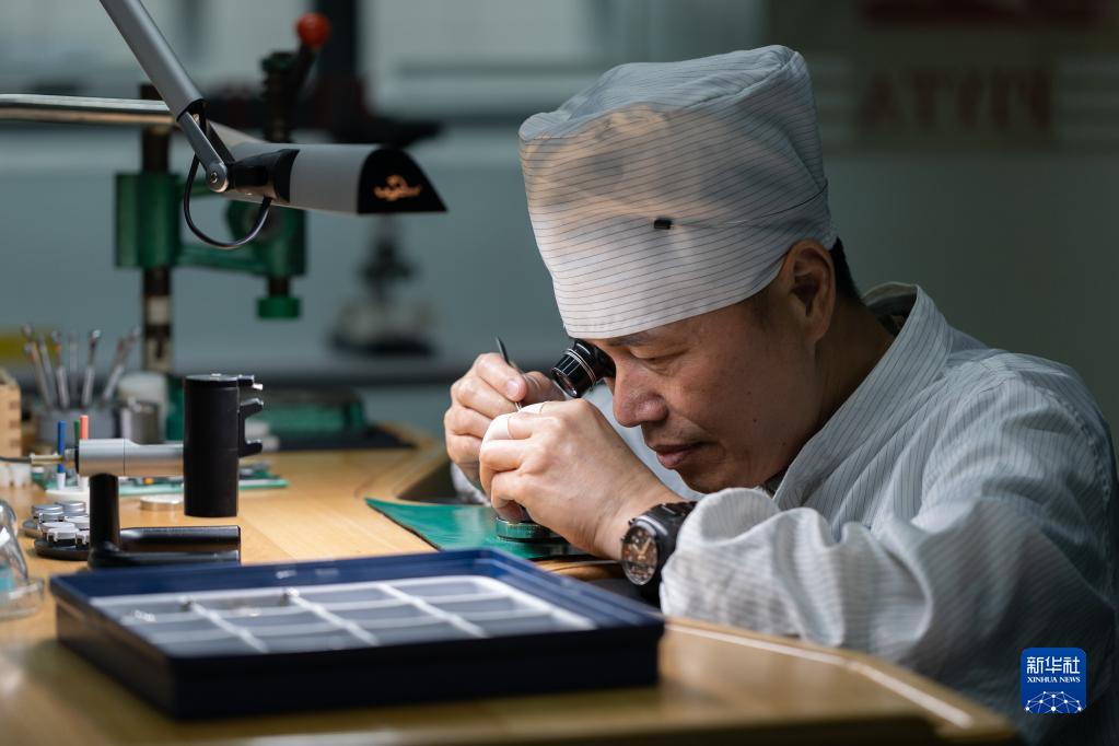 4月25日,在位于深圳的飛亞達鐘表大廈,劉中華裝配手表。新華社記者 毛思倩 攝