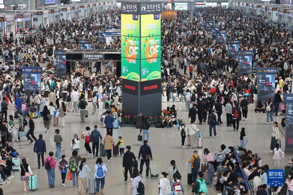 4月29日,旅客在西安北站候車(chē)出行。