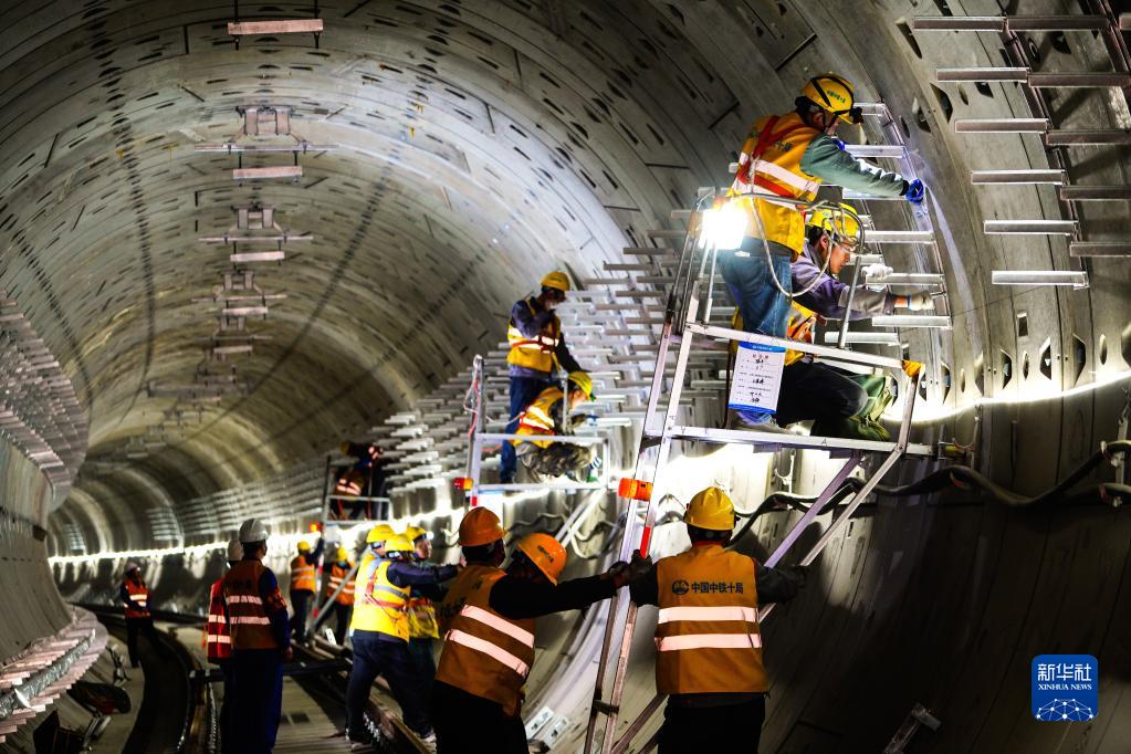 4月29日,在濟南地鐵3號線(xiàn)稻香站,中鐵十局的工作人員在進(jìn)行弱電系統通信專(zhuān)業(yè)電(光)纜支架安裝作業(yè)。