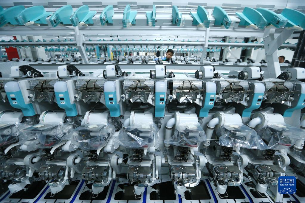 4月29日,技術(shù)工人在山東省青島市即墨區即發(fā)龍山工業(yè)園的一處數字化智能紡紗工廠(chǎng)安裝生產(chǎn)設備。