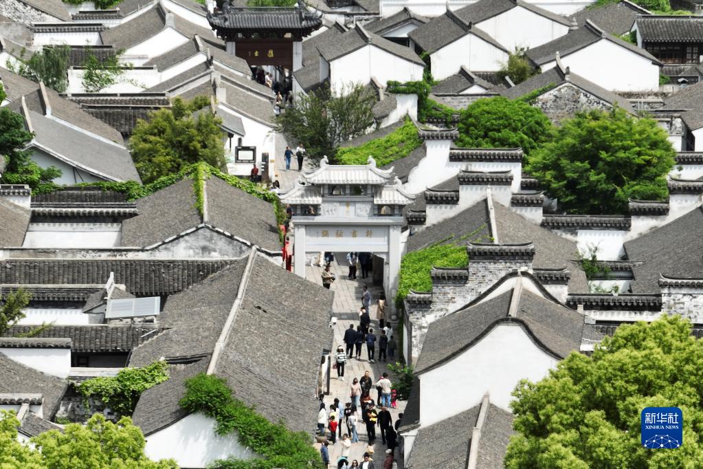 4月29日,游客在江蘇常州青果巷歷史文化街區游覽(無(wú)人機照片)。