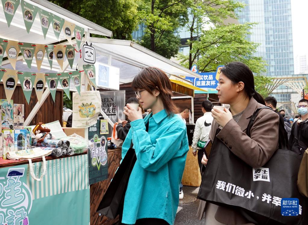 4月29日,人們在上海安義夜巷舉辦的咖啡文化節現場(chǎng)品嘗咖啡。
