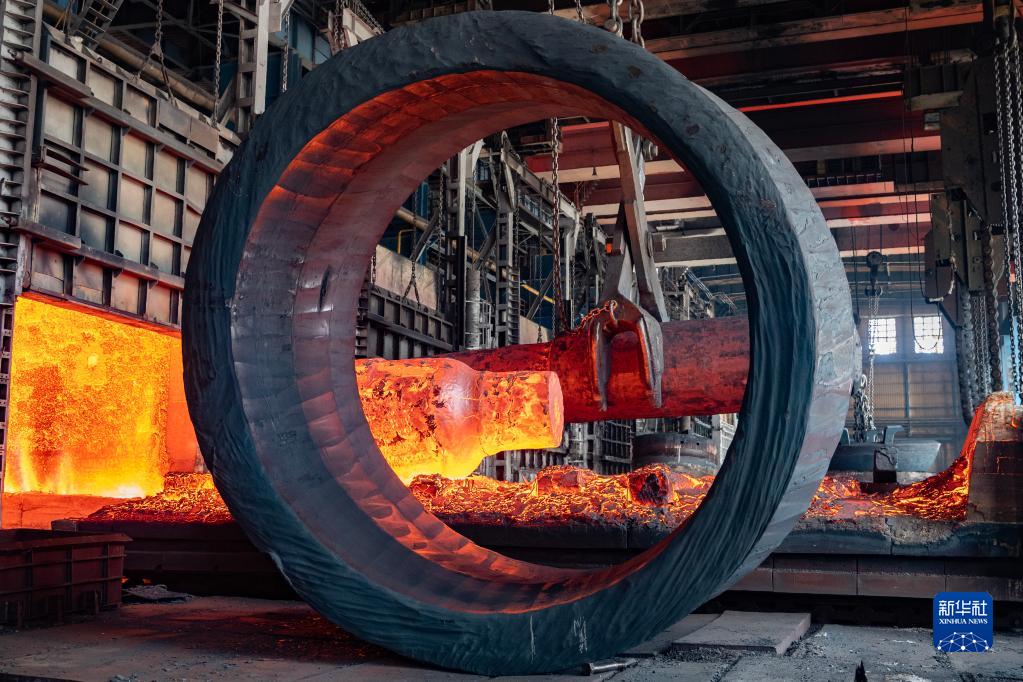 在位于黑龍江省齊齊哈爾市的中國一重集團有限公司生產(chǎn)車(chē)間,鍛件正回爐加熱(4月18日攝)。