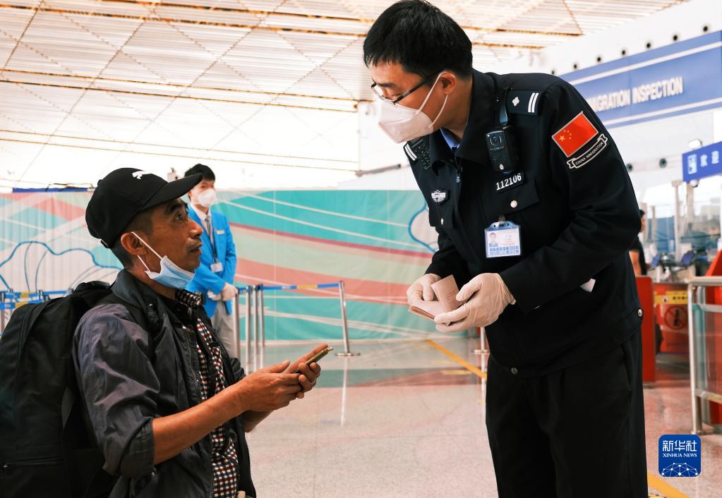4月29日,在北京首都國際機場(chǎng),北京邊檢總站民警為入境公民辦理手續。