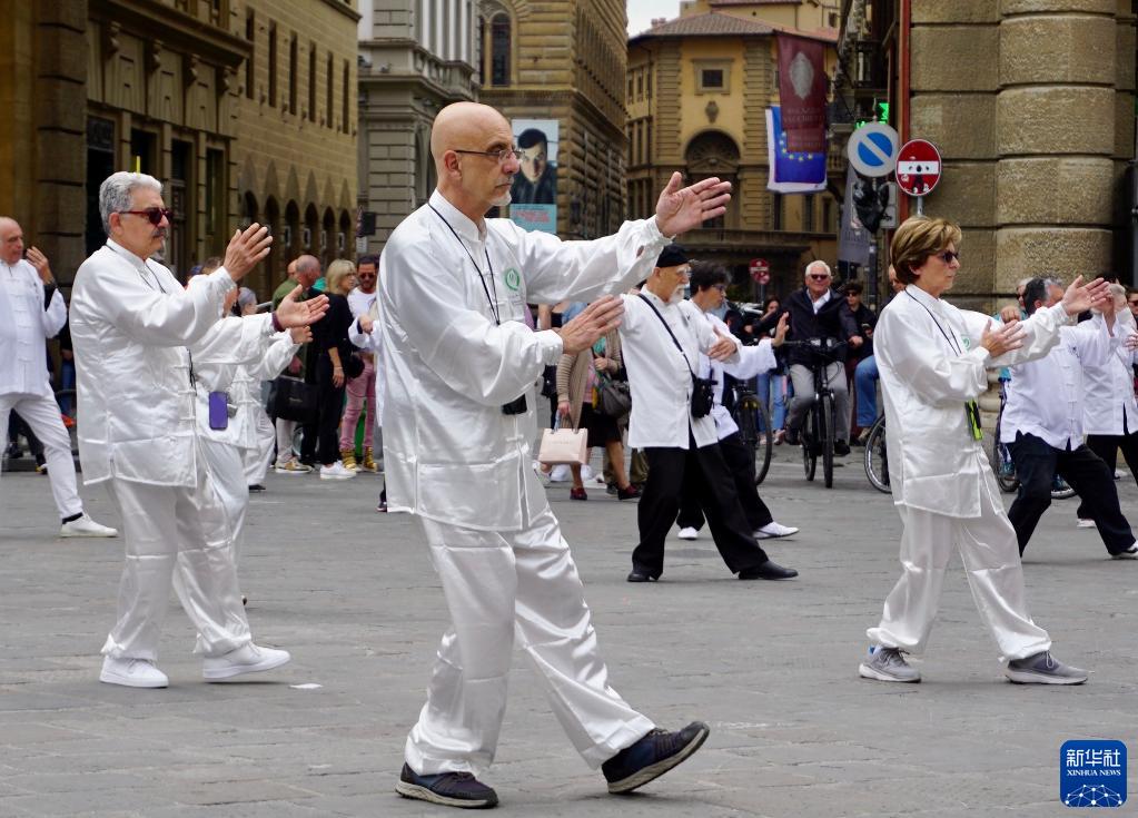 4月29日,在意大利佛羅倫薩,當地太極愛(ài)好者打太極拳。
