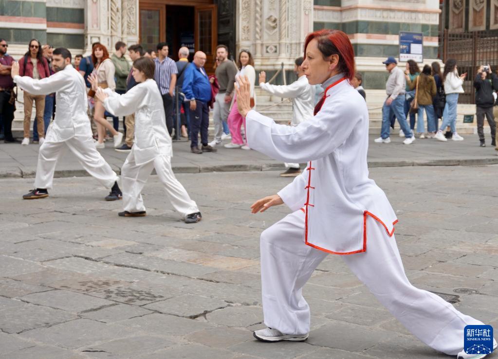 4月29日,在意大利佛羅倫薩,當地太極愛(ài)好者打太極拳。