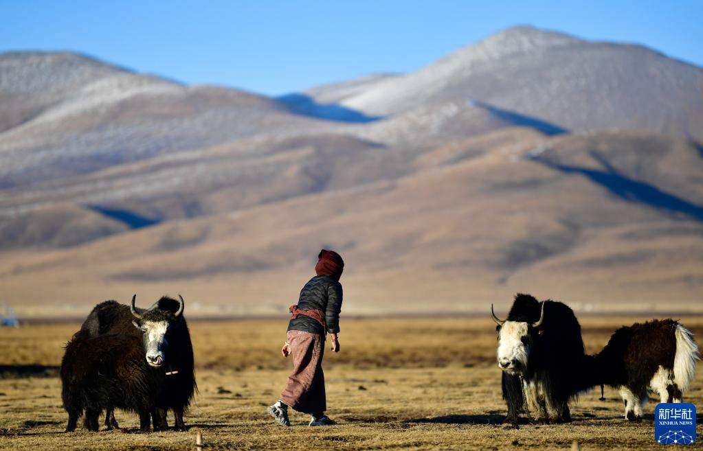 青海省玉樹(shù)藏族自治州稱(chēng)多縣珍秦鎮二村牧民放牧歸來(lái)(2020年10月28日攝)。