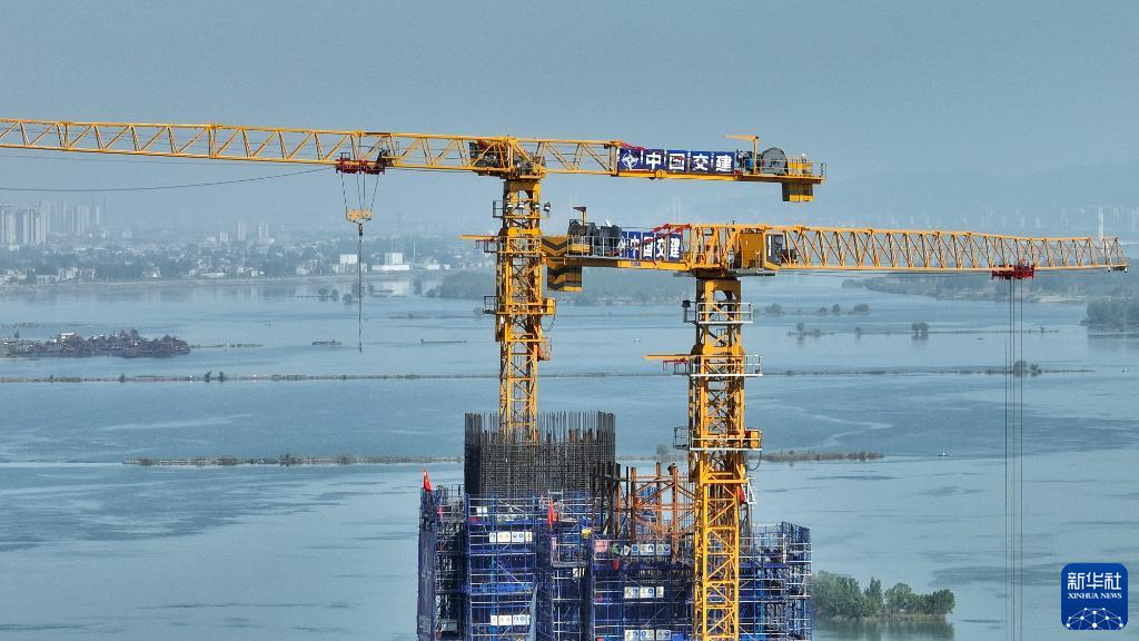 4月30日,在湖北省襄陽(yáng)市,中交二航局工人在牛首漢江特大橋主塔上作業(yè)。