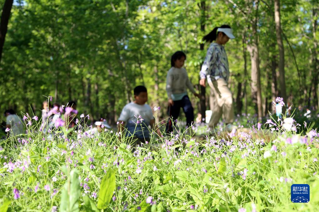 4月30日,小朋友在山東省濱州市惠民縣石廟鎮沙窩林場(chǎng)千畝槐樹(shù)林玩耍。