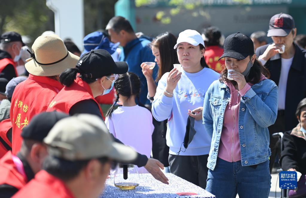 4月30日,游客在北京八大處公園舉行的中國園林茶文化節百姓品鑒活動(dòng)中品茶。
