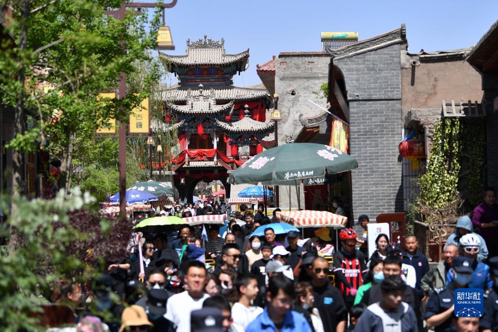 4月30日,游客在甘肅省蘭州市西固區河口古鎮游覽。