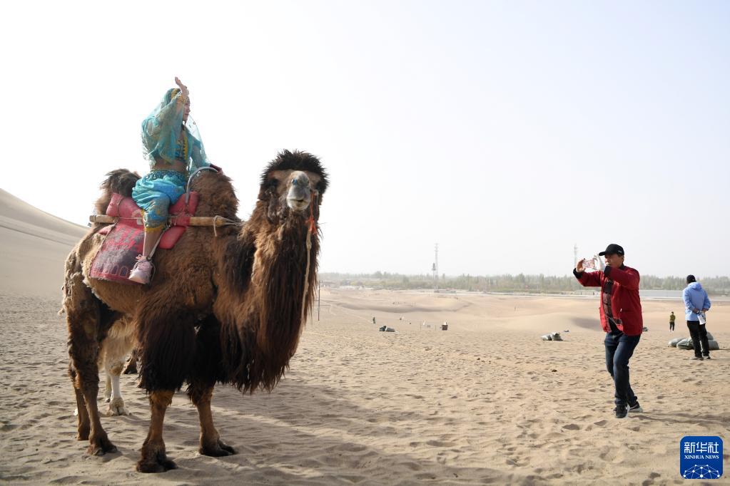 “五一”假期,敦煌絲路游頗具人氣,這些駱駝每天更忙碌也更規律——早晨六點(diǎn)多“上班”,輪流休息,傍晚七點(diǎn)多“下班”。蜿蜒的駝隊在駝道上馱著(zhù)游客在沙漠中漫步,悠長(cháng)的駝鈴伴著(zhù)游客的歡聲笑語(yǔ),成為鳴沙山月牙泉景區一道優(yōu)美的風(fēng)景線(xiàn)。