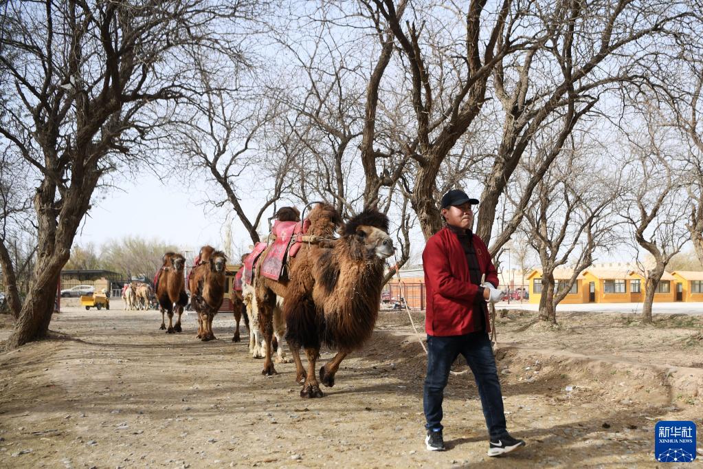 換上景區工作服的曹文華牽著(zhù)駱駝準備“上班”(4月24日攝)。