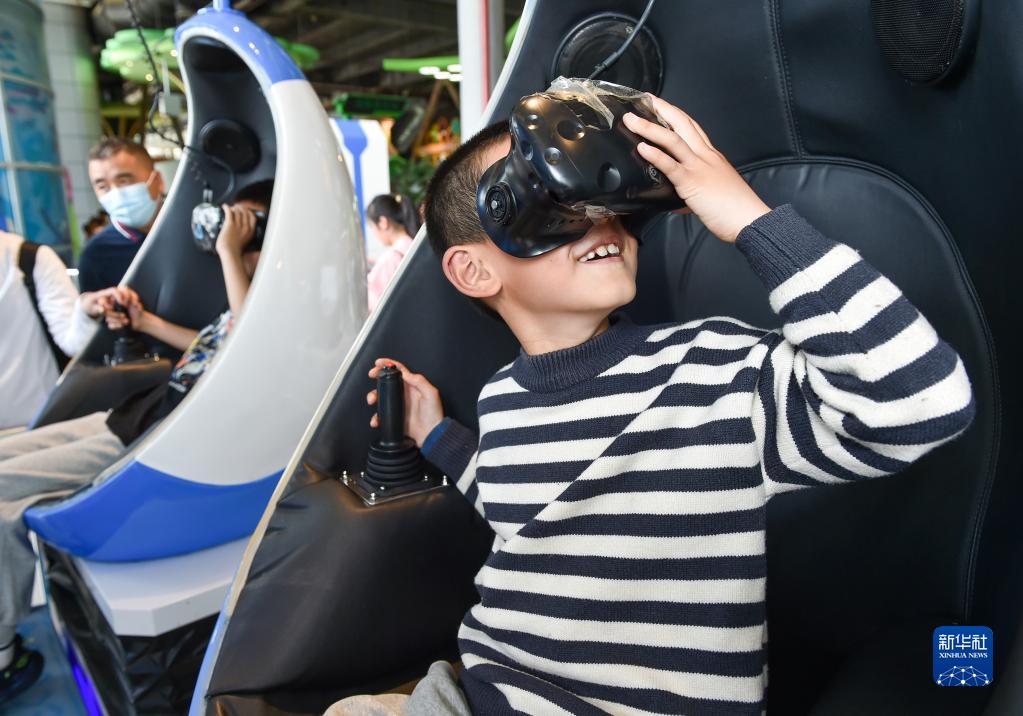 5月1日,小朋友在南京科技館通過(guò)VR技術(shù)體驗“海底兩萬(wàn)里”。