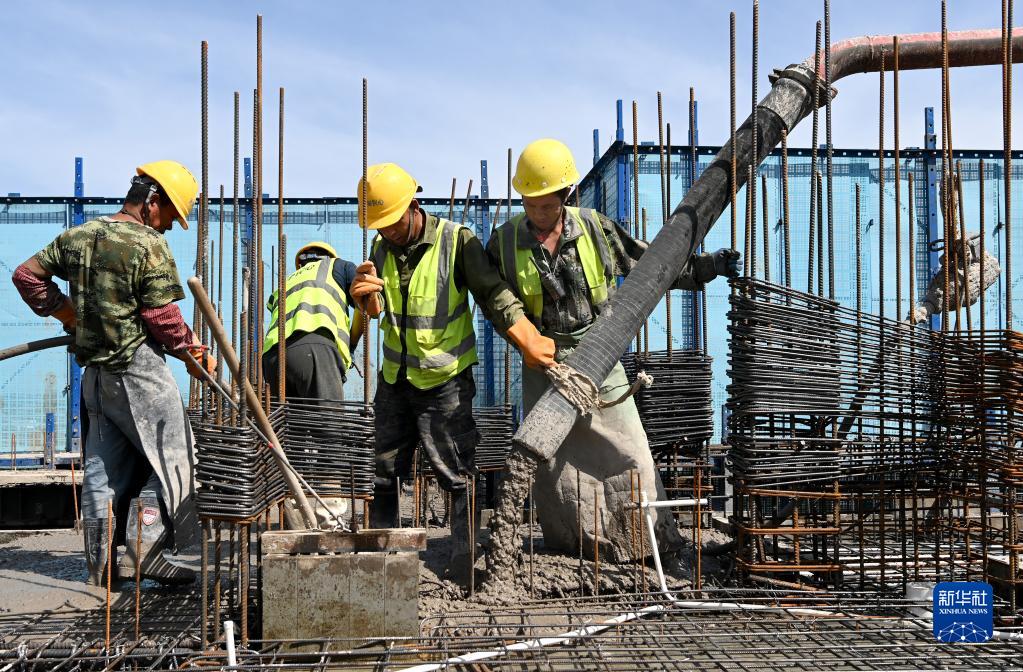 5月1日,工人在中建二局陜西分公司高鐵新城項目工地施工。