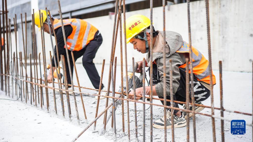 5月1日,中鐵建工集團工人在貴州貴安新區貴安站擴建項目工地施工。
