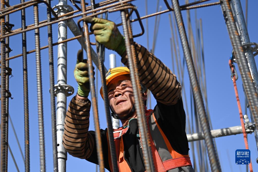 5月1日,在浙江省杭州市臨平區一個(gè)項目工地,中建三局的建設者在施工中。