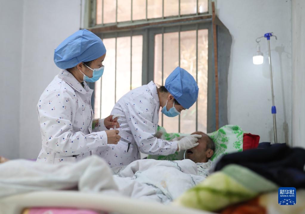 5月1日,醫護人員在貴州省銅仁市玉屏侗族自治縣皂角坪街道皂角坪村給行動(dòng)困難的村民提供醫療服務(wù)。