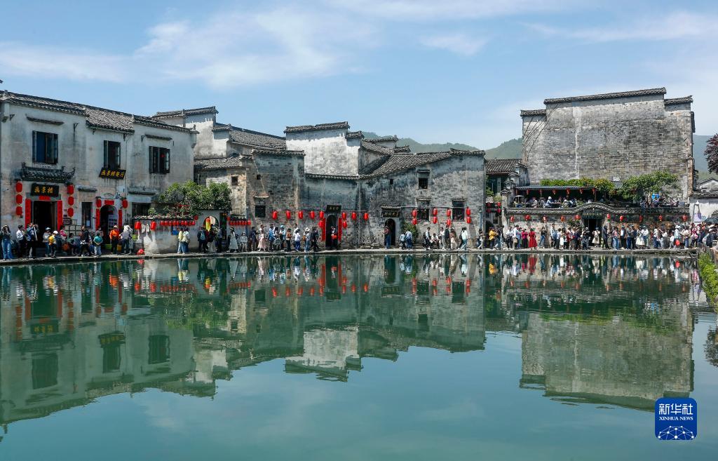 4月30日,游客在安徽省黃山市黟縣宏村參觀(guān)游玩。