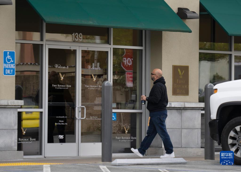 5月1日,在美國加利福尼亞州米爾布雷市,一名男子從一家第一共和銀行前走過(guò)。