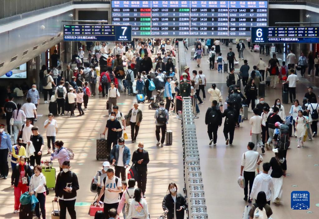 5月3日,旅客在北京西站準備乘車(chē)。