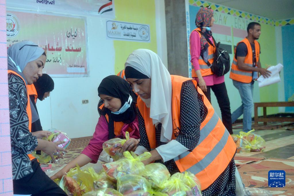 5月2日,在埃及南部阿斯旺省,工作人員為逃離蘇丹進(jìn)入埃及的難民準備救濟包裹。