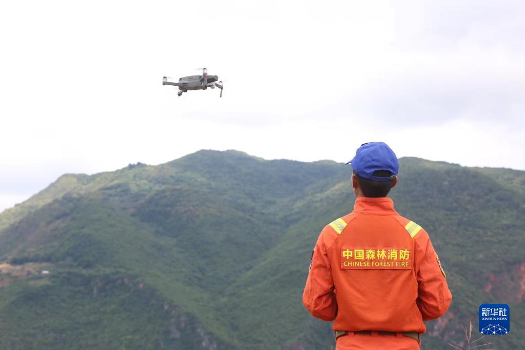 2021年8月16日,云南省森林消防總隊特勤大隊消防員用無(wú)人機對亞洲象群進(jìn)行監測。