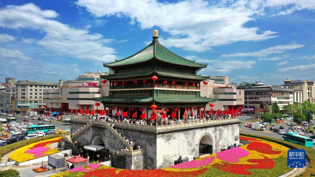 西安鐘樓(5月1日攝,無(wú)人機照片)。
