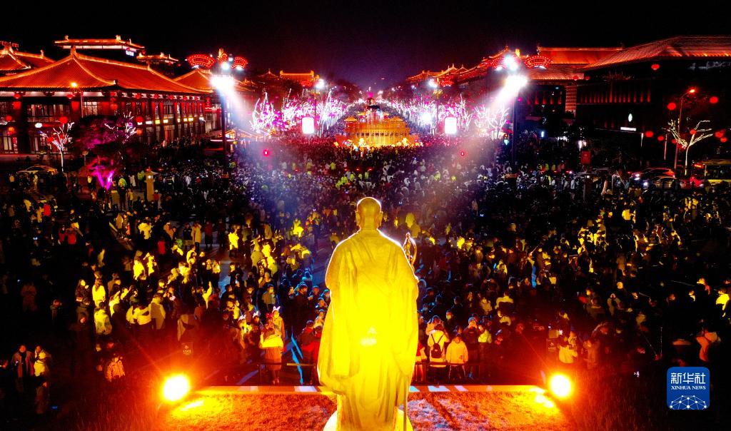 西安大唐不夜城步行街區(1月28日攝,無(wú)人機照片)。