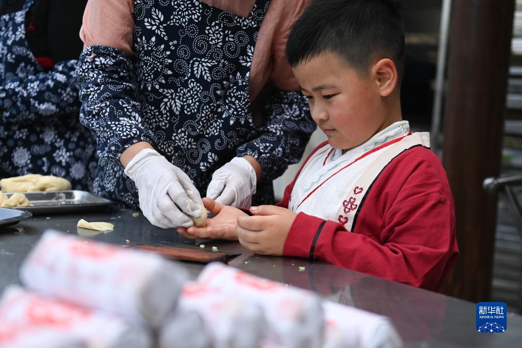 5月4日,小朋友學(xué)習制作“立夏餅”。