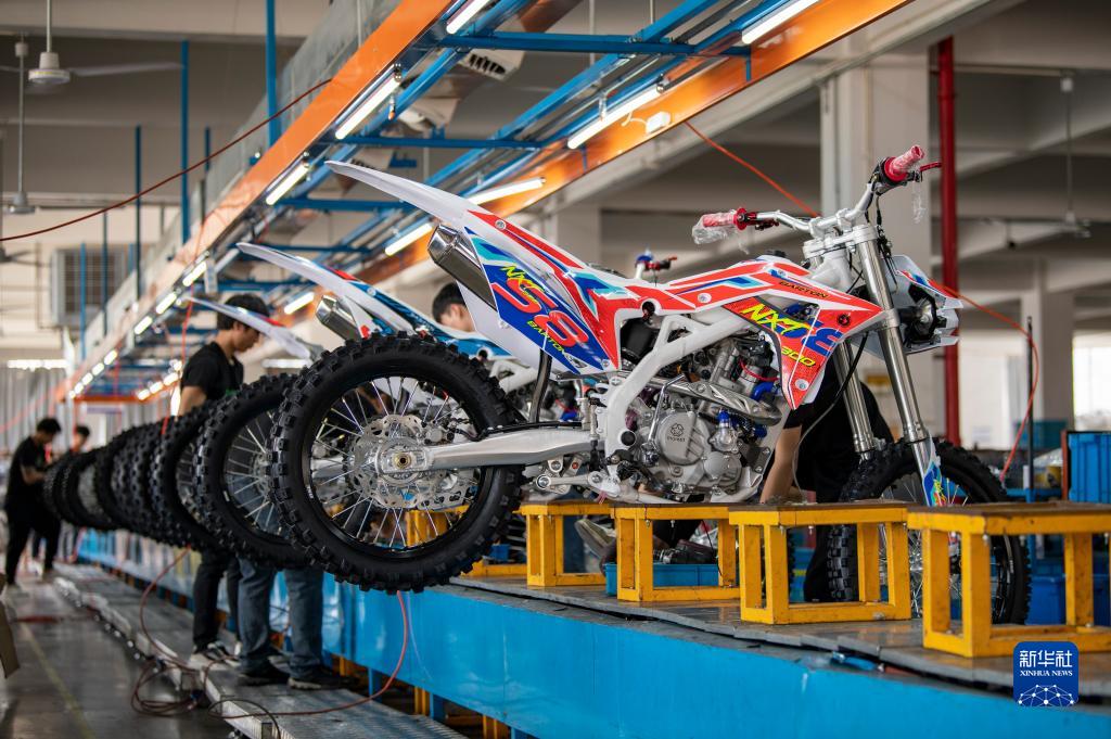 5月4日,在浙江省金華市武義縣桐琴鎮五金工業(yè)區的一家企業(yè),工人趕制準備銷(xiāo)往海外的越野摩托車(chē)。