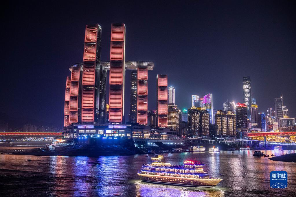 2023年4月1日,長(cháng)江、嘉陵江兩江交匯的重慶朝天門(mén)在夜幕下燈火璀璨。
