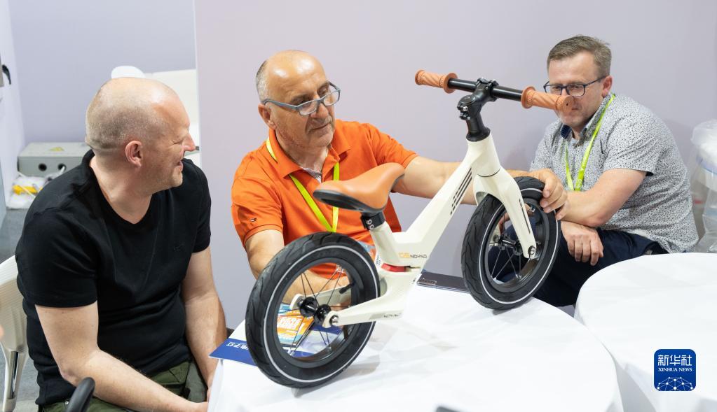 5月5日,在第31屆中國國際自行車(chē)展覽會(huì )上,波蘭客商在觀(guān)看童車(chē)。