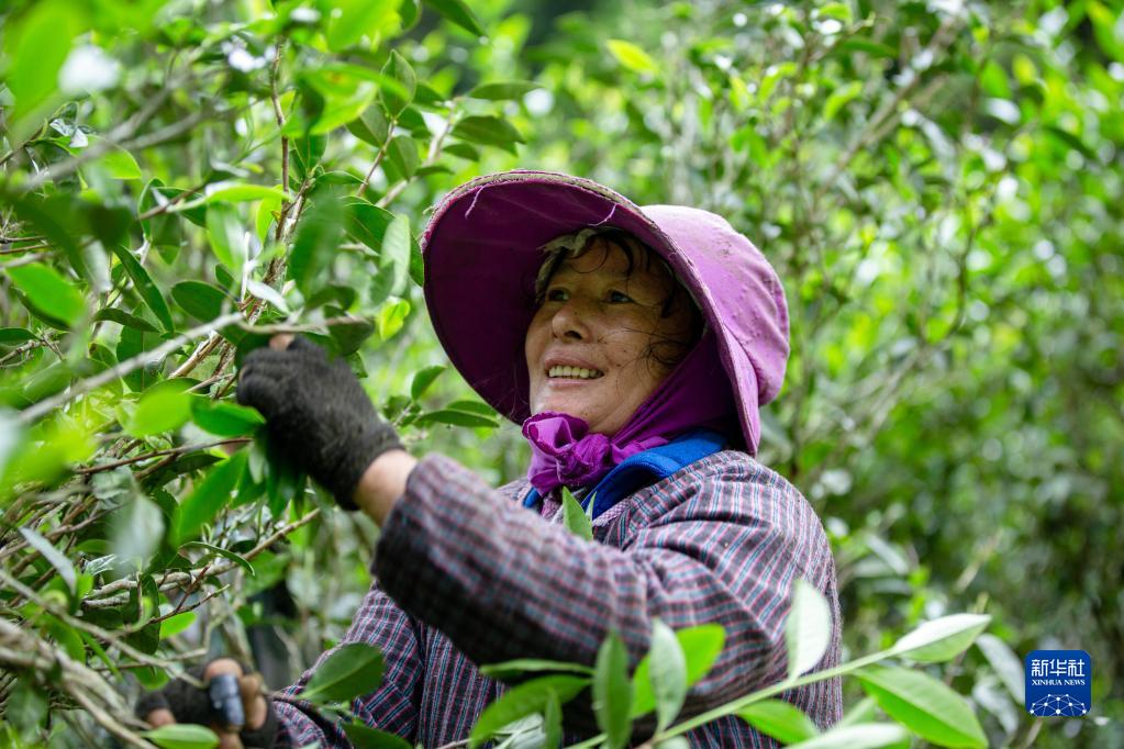 5月5日,村民在福建省武夷山市洋莊鄉漿溪村茶園采摘新茶。