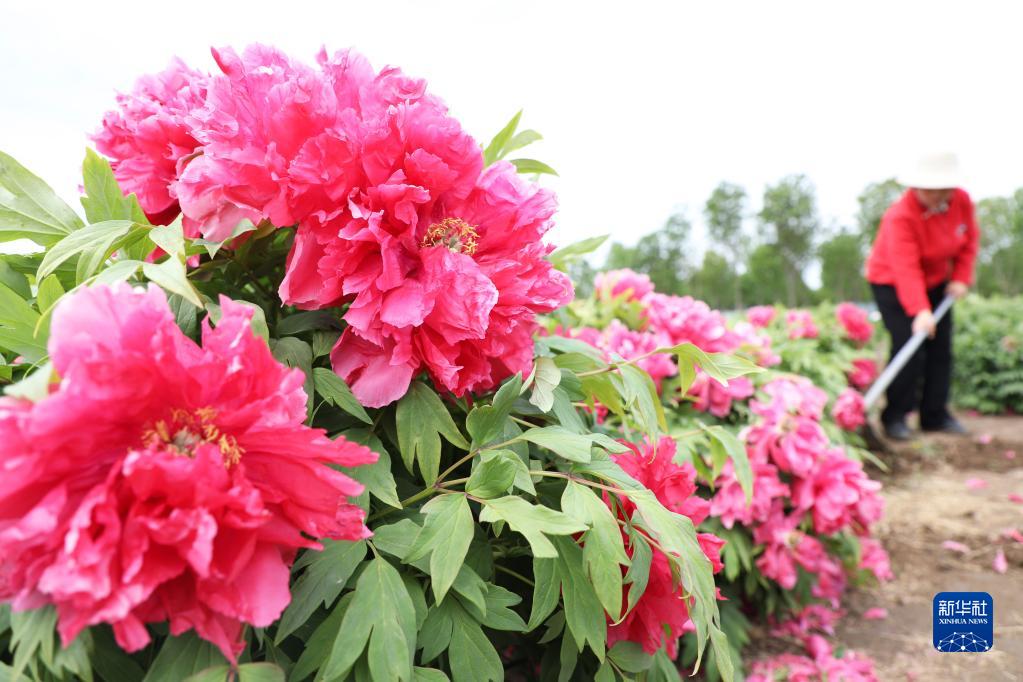 5月5日,河北省唐山市豐潤區石各莊鎮劉辛莊村農民在花卉基地除草。