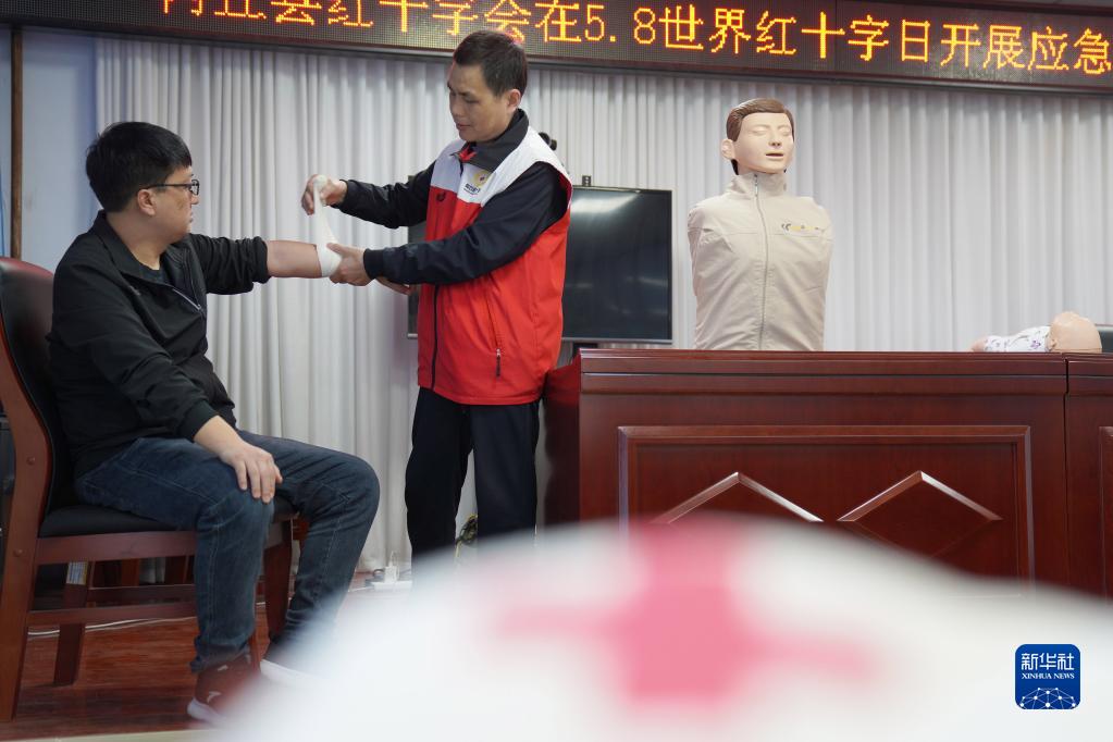 5月5日,學(xué)員在內丘縣紅十字會(huì )培訓教室學(xué)習外傷包扎知識。