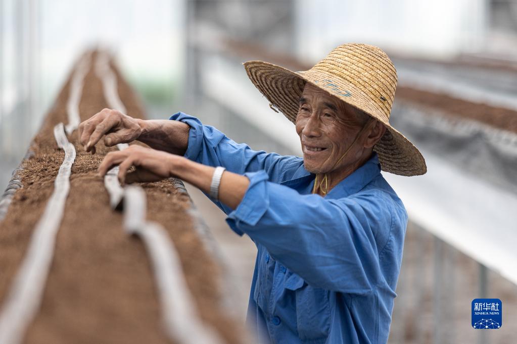 5月6日,農戶(hù)在浙江省湖州市吳興區八里店鎮移沿山村一座未來(lái)農場(chǎng)鋪設滴灌系統,為育苗做準備。
