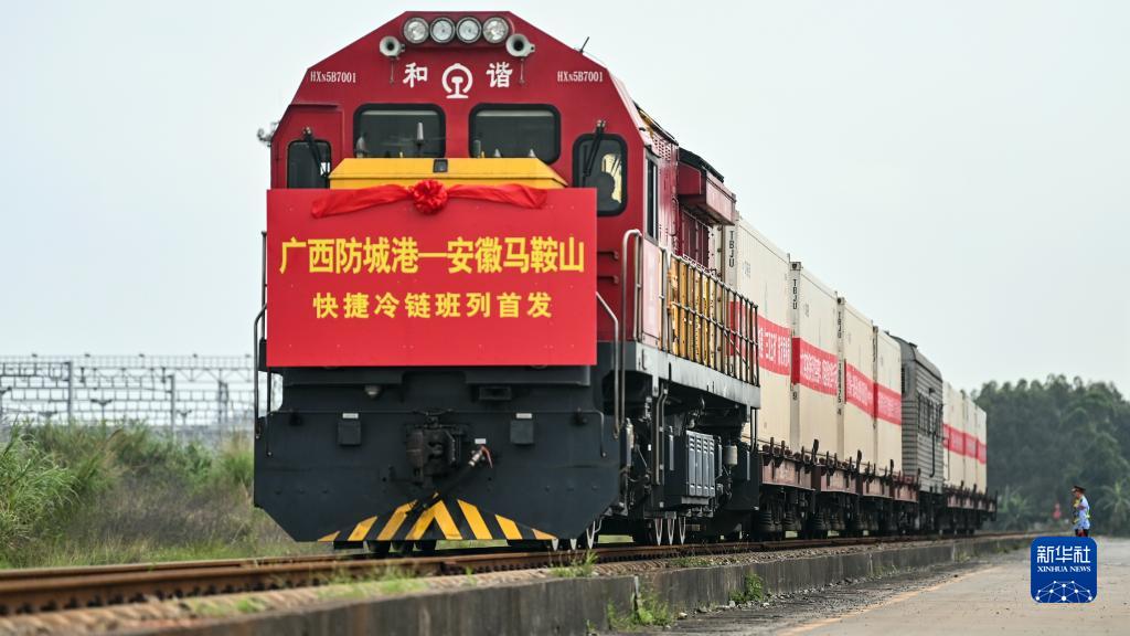 當日,首趟“防城港-馬鞍山”冷鏈班列搭載8個(gè)冷鏈集裝箱從廣西防城港站發(fā)車(chē),前往安徽馬鞍山站。這批貨物將經(jīng)馬鞍山市分撥至周邊的生鮮市場(chǎng),讓當地百姓可以品嘗到來(lái)自北部灣的海鮮產(chǎn)品。至此,廣西防城港開(kāi)行的冷鏈班列線(xiàn)路升至9條。