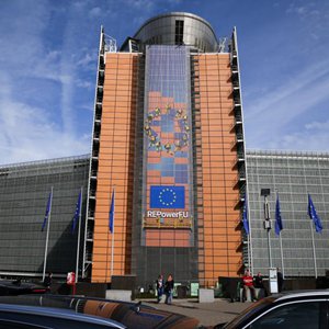 5月6日,人們在比利時(shí)布魯塞爾的歐盟委員會(huì )總部大廈外休息。