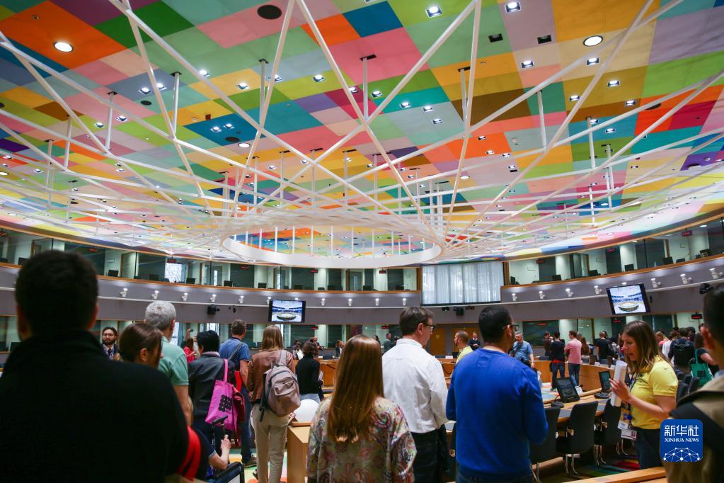 5月6日,在比利時(shí)布魯塞爾,人們在歐盟理事會(huì )辦公大樓參觀(guān)會(huì )議室。