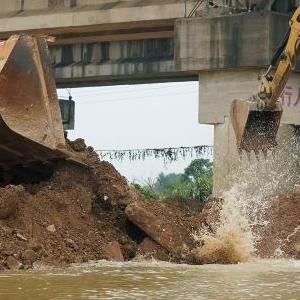 江西豐城京九線(xiàn)鐵路橋下河堤潰口順利合龍