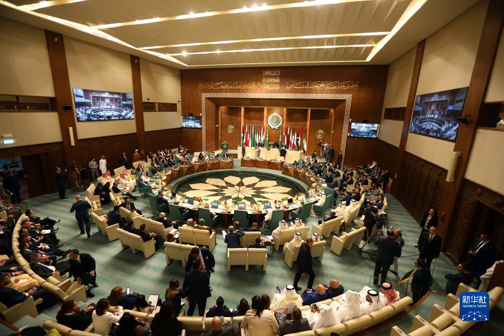 這是5月7日在埃及開(kāi)羅拍攝的阿拉伯國家聯(lián)盟外長(cháng)級特別會(huì )議現場(chǎng)。