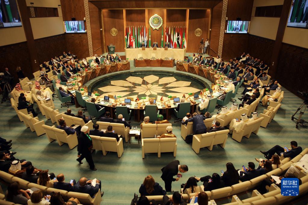 這是5月7日在埃及開(kāi)羅拍攝的阿拉伯國家聯(lián)盟外長(cháng)級特別會(huì )議現場(chǎng)。