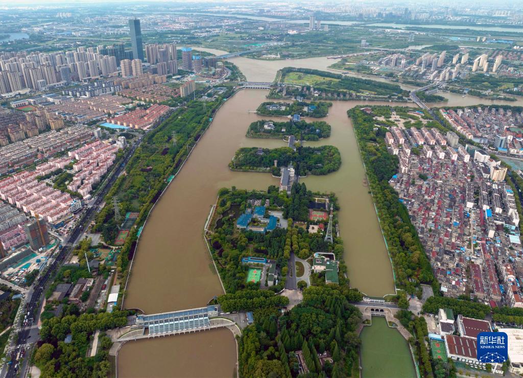 5月7日在江蘇省揚州市拍攝的江都水利樞紐(無(wú)人機照片)。
