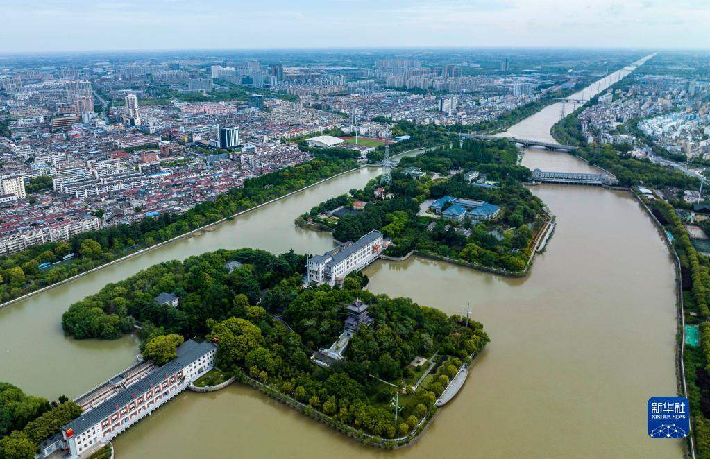 5月7日在江蘇省揚州市拍攝的江都水利樞紐(無(wú)人機照片)。