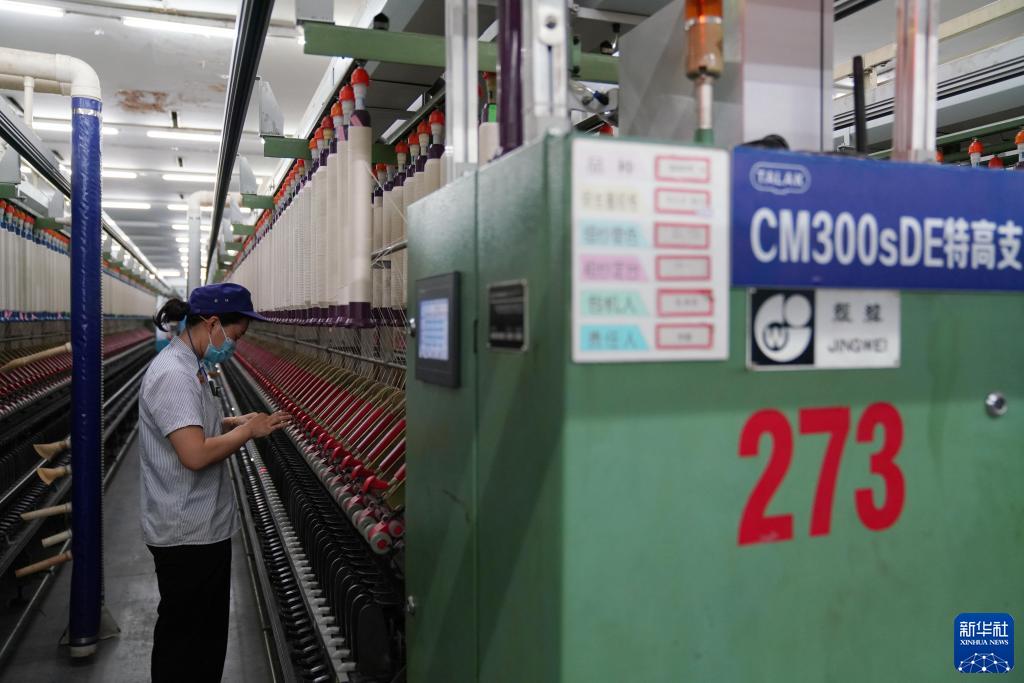 5月8日,在無(wú)錫一棉紡織集團長(cháng)江車(chē)間,工人在特高支紗生產(chǎn)線(xiàn)上作業(yè)。該生產(chǎn)線(xiàn)可批量生產(chǎn)達到世界領(lǐng)先水平的300支純棉紗線(xiàn)。