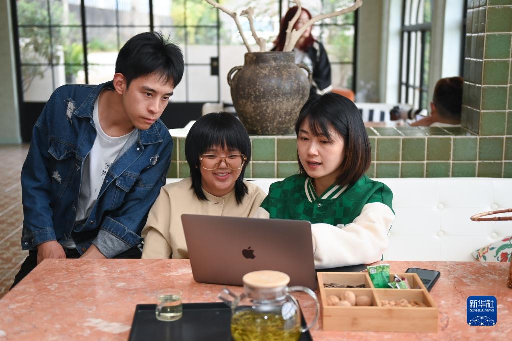 5月8日,在德清縣莫干山鎮高峰村,“彌宮”民宿主姚蓀芳(右一)與工作人員討論為客戶(hù)定制的婚禮方案。