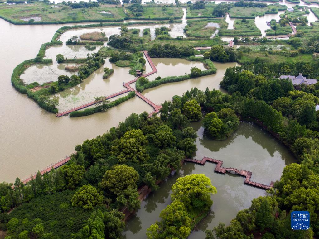 空中俯瞰位于德清縣的下渚湖國家濕地公園(5月8日攝,無(wú)人機照片)。下渚湖國家濕地公園面積約為36平方公里,是國家AAAA級景區、省級風(fēng)景名勝區、朱鹮易地保護暨浙江種群重建基地、國家野生大豆保護區、省級生態(tài)旅游示范區試點(diǎn)單位。