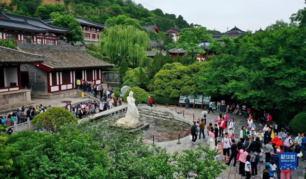 游客在西安華清宮景區內游覽參觀(guān)(5月5日攝,無(wú)人機照片)。