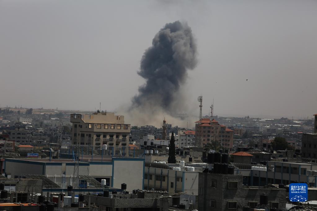 5月10日,在加沙地帶城市拉法,以色列軍隊的空襲造成爆炸和濃煙。